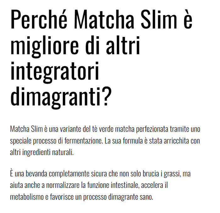 Al giorno d’oggi, l’obesità è diventata un problema molto diffuso. Ogni secondo adulto ha un peso in eccesso. Non tutti hanno la disciplina e l’organizzazione necessarie per perdere peso autonomamente. Molti ricorrono a metodi aggressivi, assumono pillole dimagranti, si sottopongono a interventi di riduzione dello stomaco e a liposuzioni. I dietologi sconsigliano fortemente questi metodi. Perdere peso in modo naturale con Matcha Slim può aiutarti a sbarazzarti del peso in eccesso.